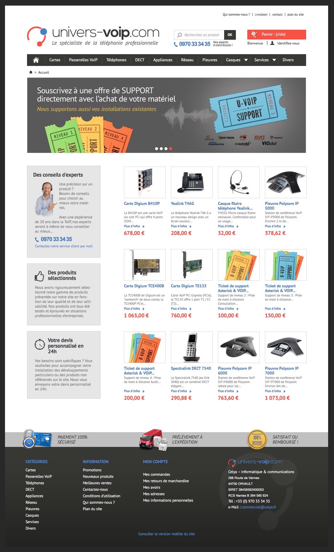 Habillage d’une boutique Prestashop spécialisée dans la vente de matériel Télécom pour les professionnels.